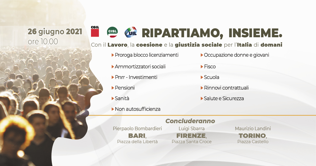 26 Giugno 2021 Il SUNIA aderisce alle iniziative di CGIL, CISL e UIL del 26 Giugno in difesa della sicurezza nei luoghi di lavoro, del diritto al lavoro, alla sanità, all'istruzione, alle pensioni ed al diritto alla casa che viene sempre più negato in una situazione che vede, in questo periodo, una emergenza abitativa [...]