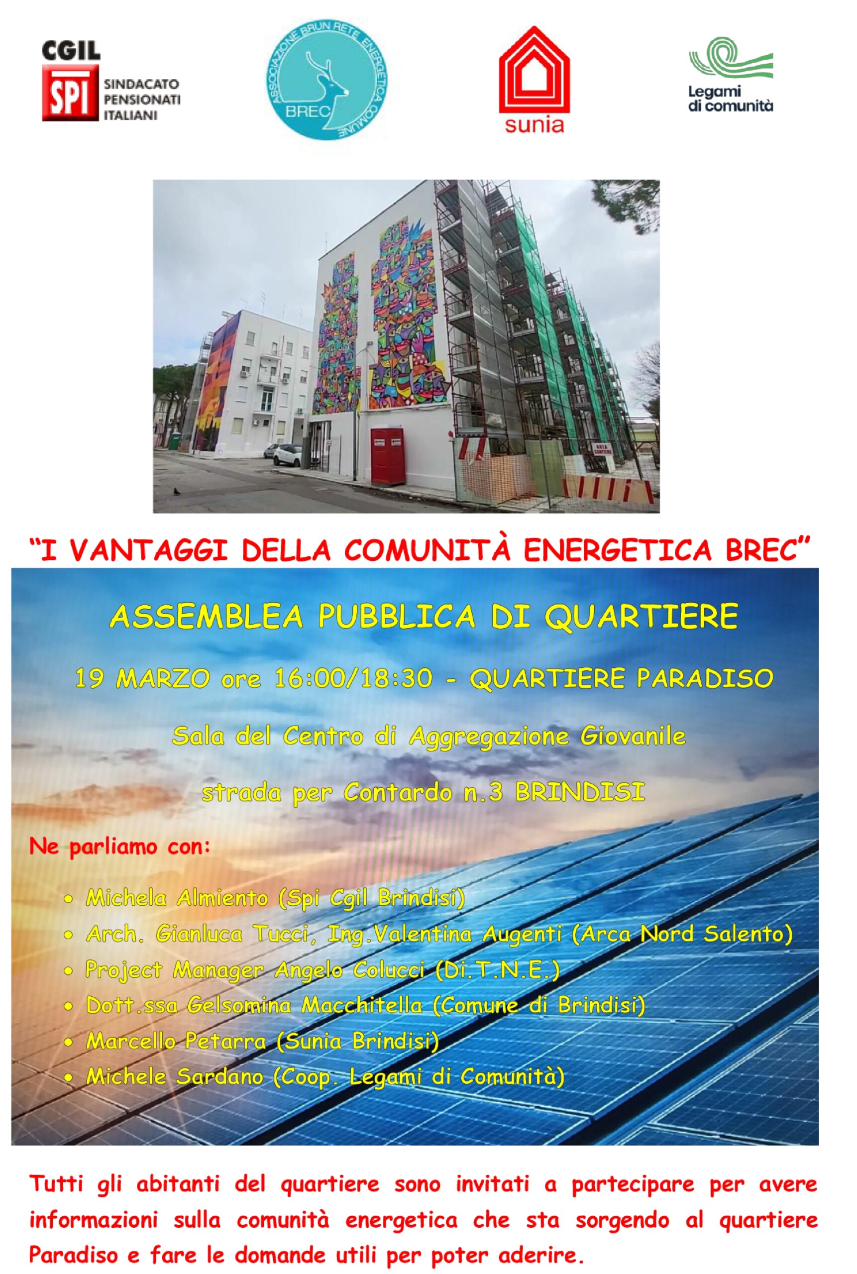 Brindisi, 19 Marzo 2024 Assemblea pubblica di quartiere, oggi dalle ore 16 alle ore 18 presso la Sala del Centro di Aggregazione Giovanile, strada per Contardo n. 3 - quartiere Paradiso. - scarica la locandina