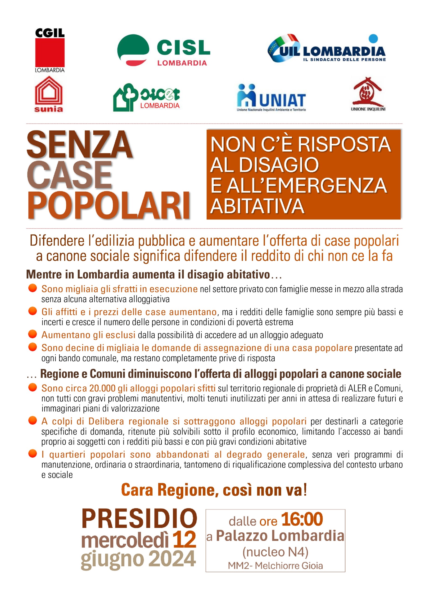 Bologna, 28 maggio 2024 La CASA è un’emergenza che chiede risposte urgenti e non più rinviabili. Si è svolto questa mattina il presidio davanti alla Prefettura di Bologna, promosso da SUNIA, in contemporanea con analoghe iniziative nel resto del paese. Gli affitti di mercato schizzano a livelli insostenibili per chi oggi vive, studia e [...]