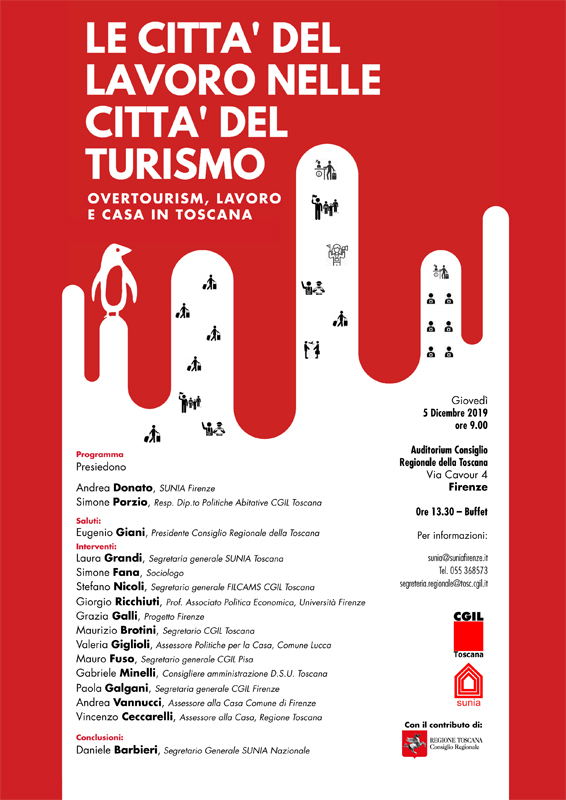5 Dicembre 2019 Turismo, casa, lavoro: Cgil e Sunia Toscana hanno presentato il “Decalogo per le città del turismo sostenibile in Toscana” al convegno di stamani a Firenze con Ceccarelli, Vannucci, Giglioli “Le città del lavoro nelle città del turismo: Overtourism, lavoro e casa in Toscana”: è il titolo del convegno, organizzato da Cgil e [...]